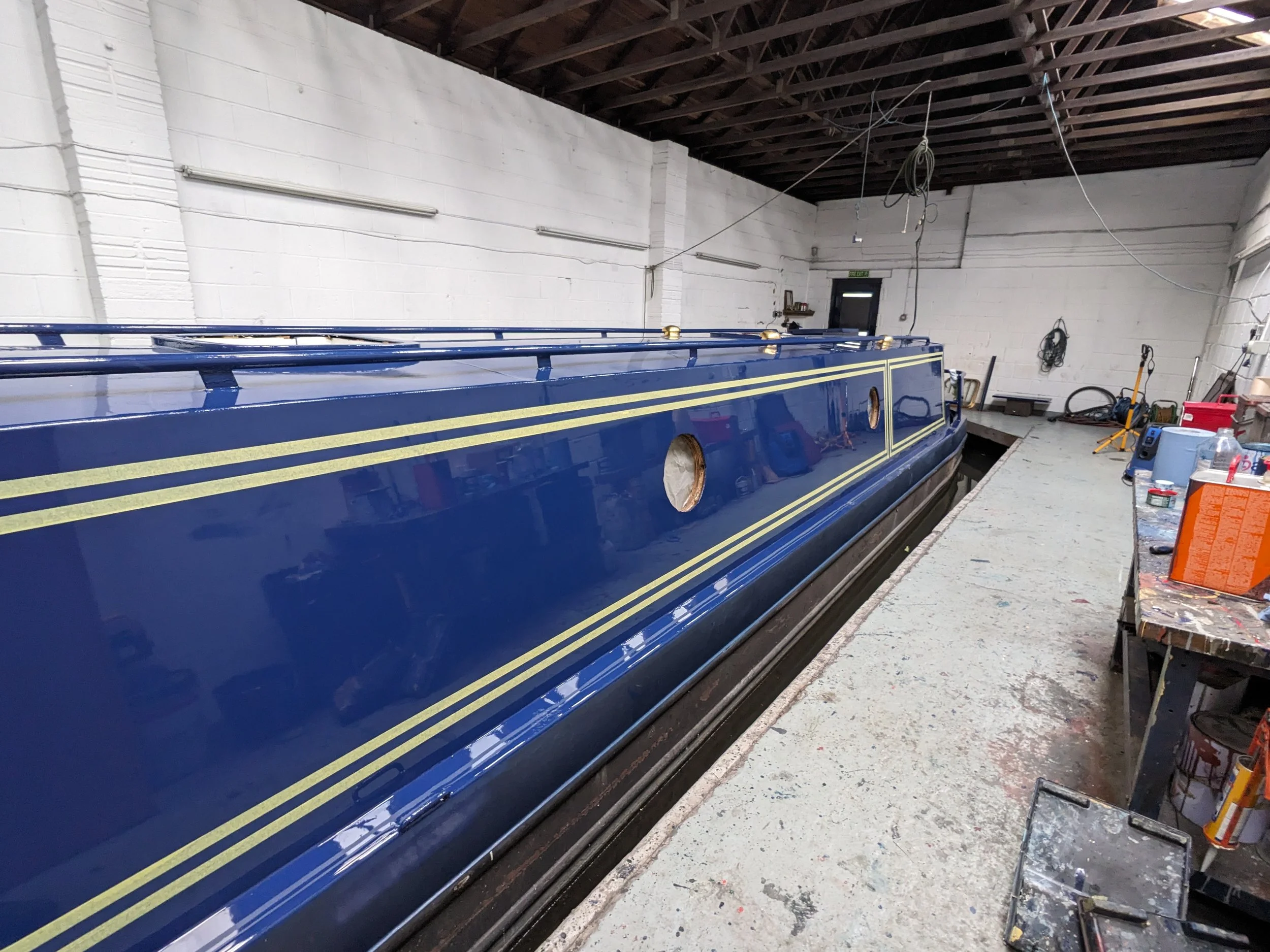 Though widely recognised for exceptional repaints, I also undertake — or coordinate on the owner’s behalf — carpentry, steelwork, electrics, gas, plumbing, and heating, as well as delivering BSS-compliant solutions for boat owners.