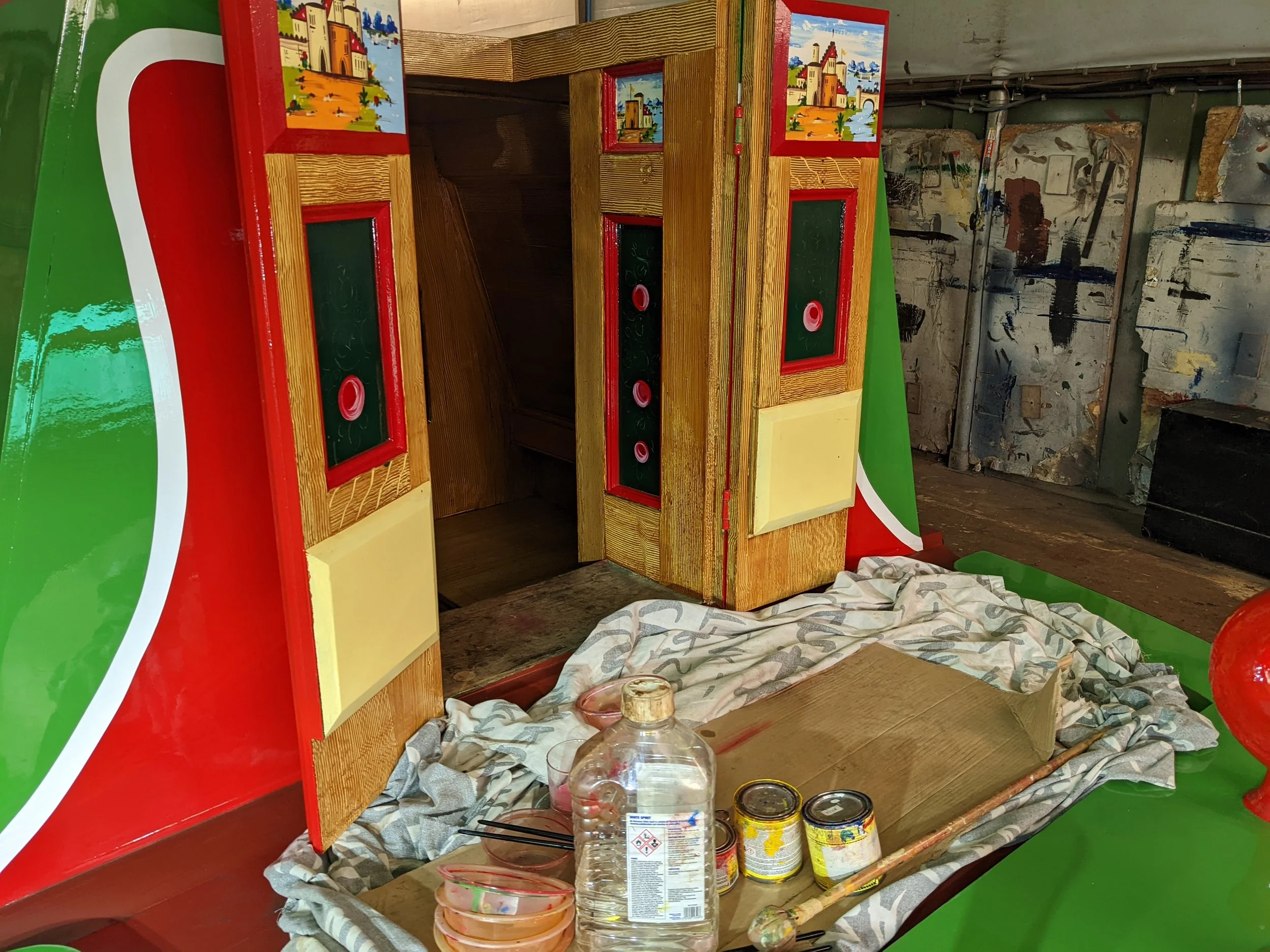 Having been entrusted with several boatman’s cabin repaints, I immersed myself in the traditional decorative arts of the waterways. I honed the craft of wood graining using hand-mixed scumbles, studied period colourways, and developed a particular pride in decorating cabin doors in keeping with time-honoured styles.
